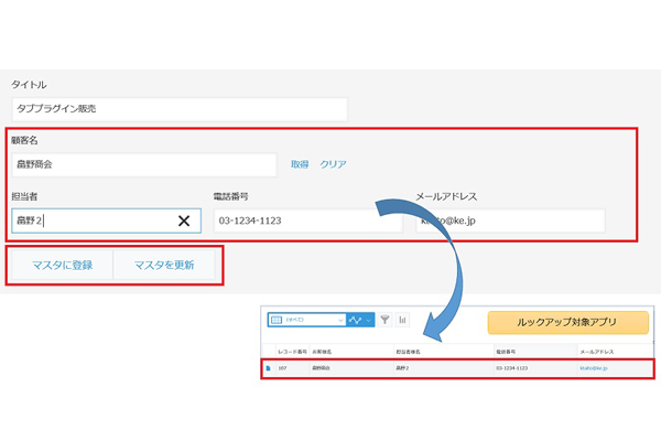 ルックアップしたデータを書き換えた後マスターアプリの更新が可能です。