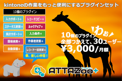 kintone で使える便利な機能を開発不要で拡張できるプラグインセット「ATTAZoo+」