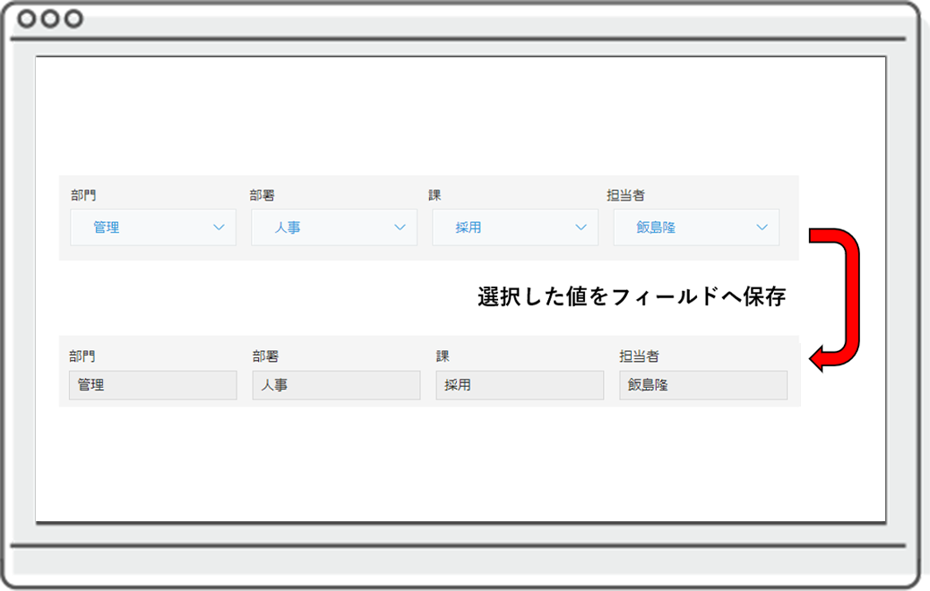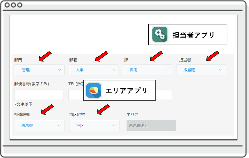 ・ドロップダウンの階層と各選択肢を、kintoneの別アプリでマスターとして管理します。