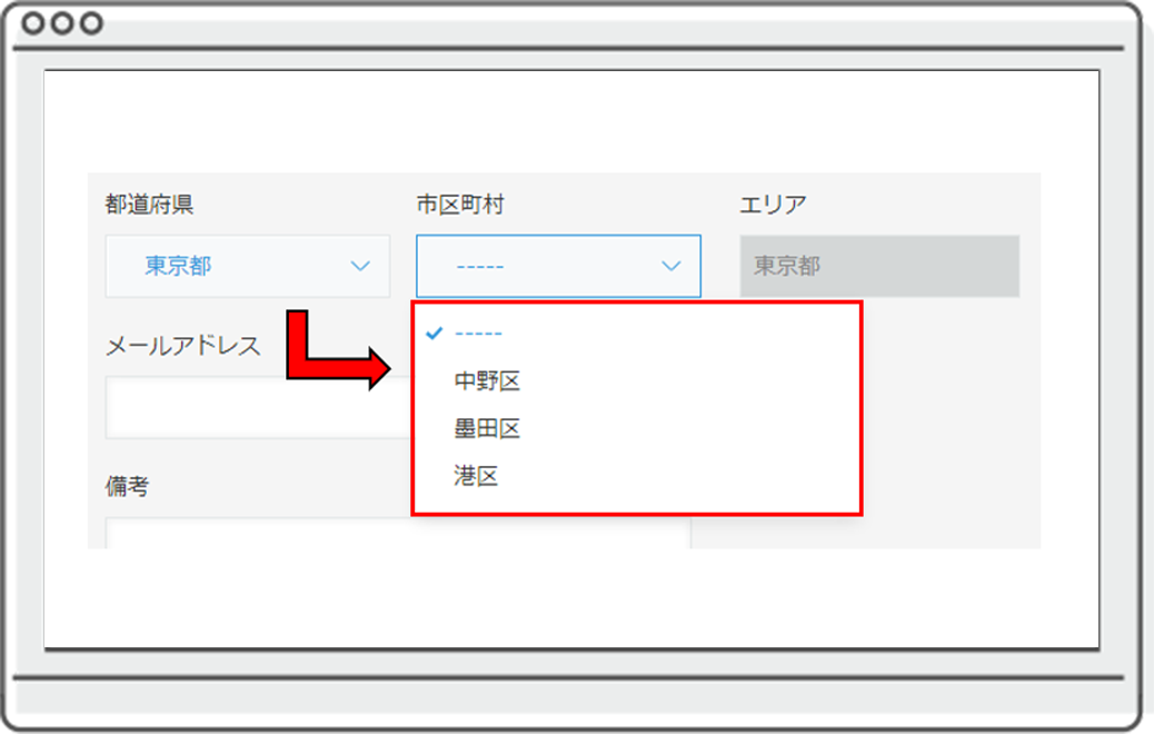 ・ドロップダウンで選択した値に連動して、次の階層のドロップダウンの選択肢を絞り込み表示します。